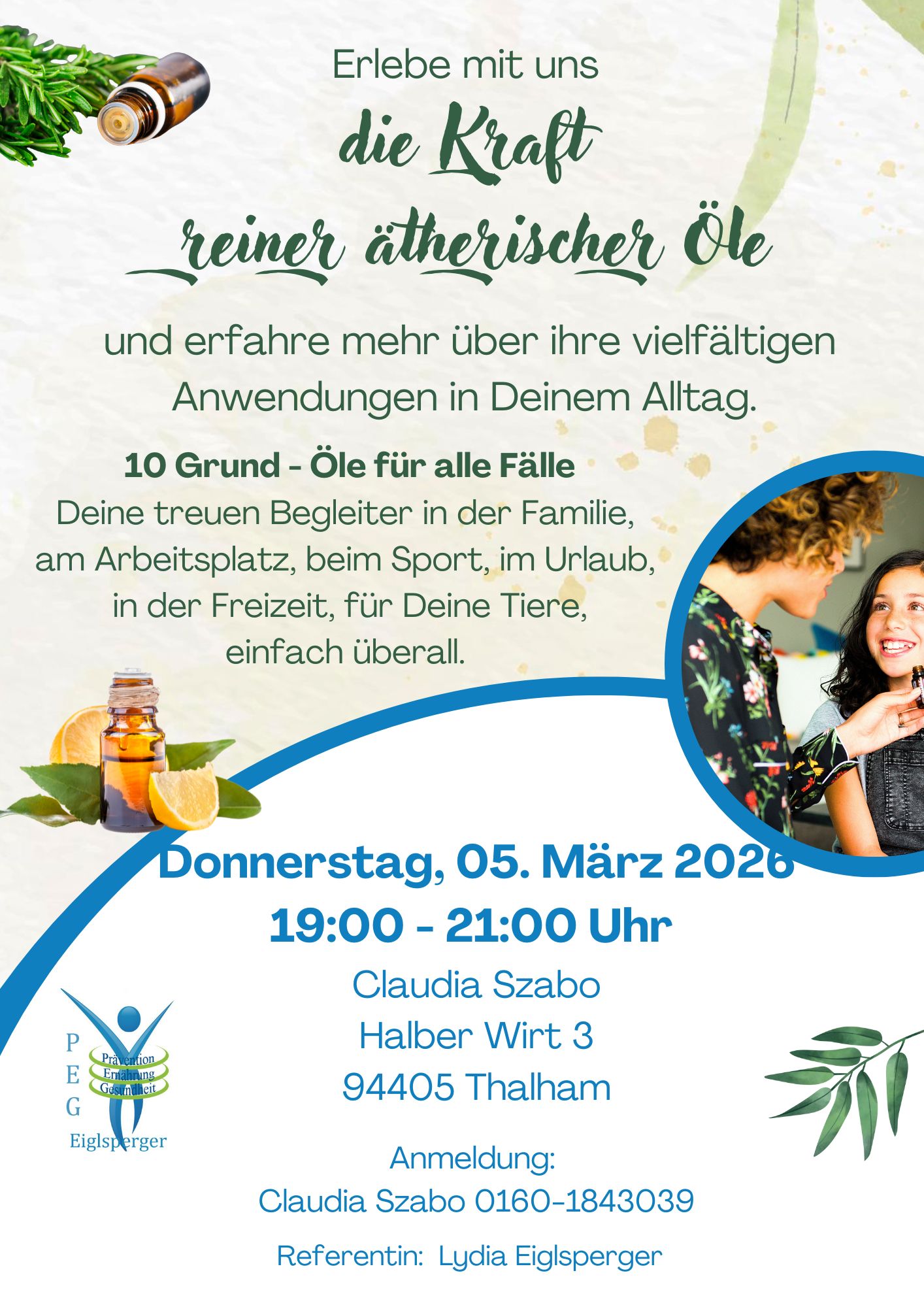 Sind Sie bereit, Ihre Gesundheit und Ihr Wohlbefinden zu steigern? Dann sind Sie hier genau richtig! Als erfahrene Ernährungsberaterin, Aromatherapeutin und Gesundheitsexpertin biete ich Ihnen informative und interaktive Vorträge und Einzelberatungen an.